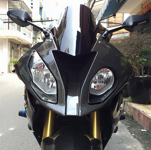 Không giống như bất kì chiếc S1000RR nào khác tại Việt Nam hiện nay, siêu môtô 1000 phân khối này ngoài việc được chủ nhân trang bị hàng loạt món đồ chơi hàng hiệu của những thương hiệu độ xe nổi tiếng hàng đầu thế giới xe còn được thay toàn bộ dàn áo nguyên bản bằng bộ áo mới làm từ chất liệu carbon siêu bền và nhẹ.