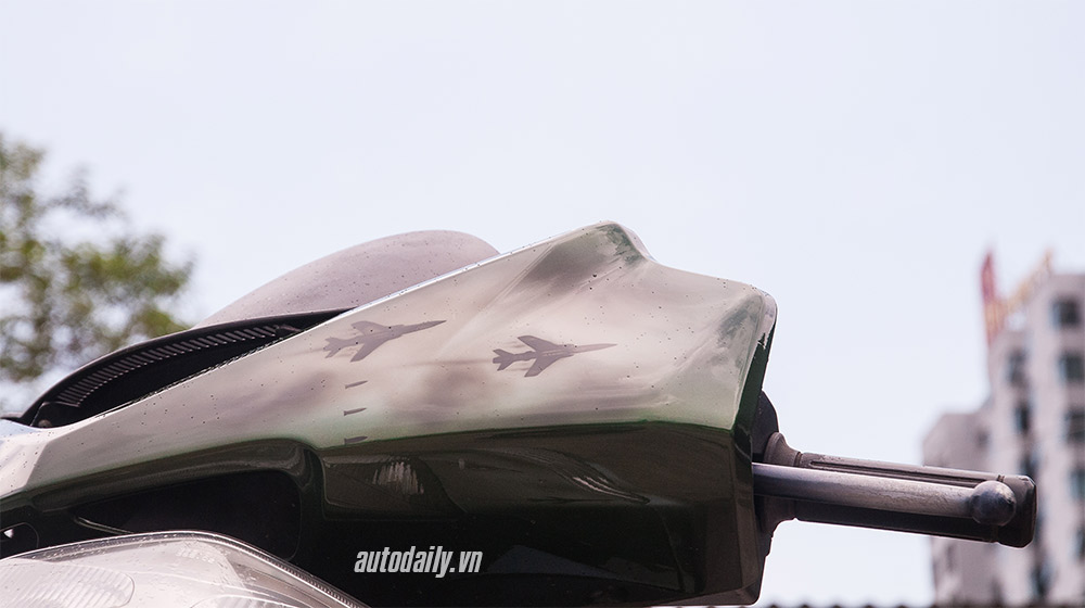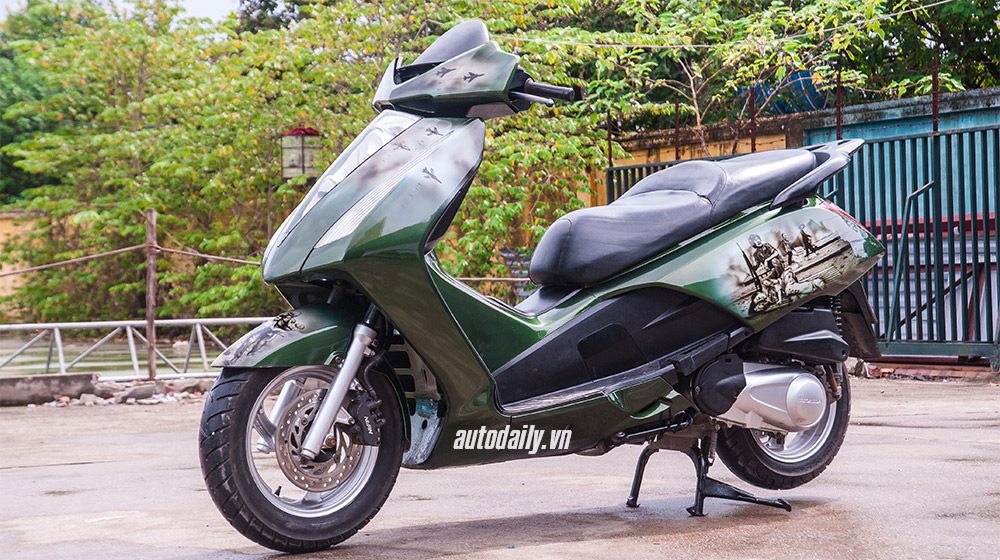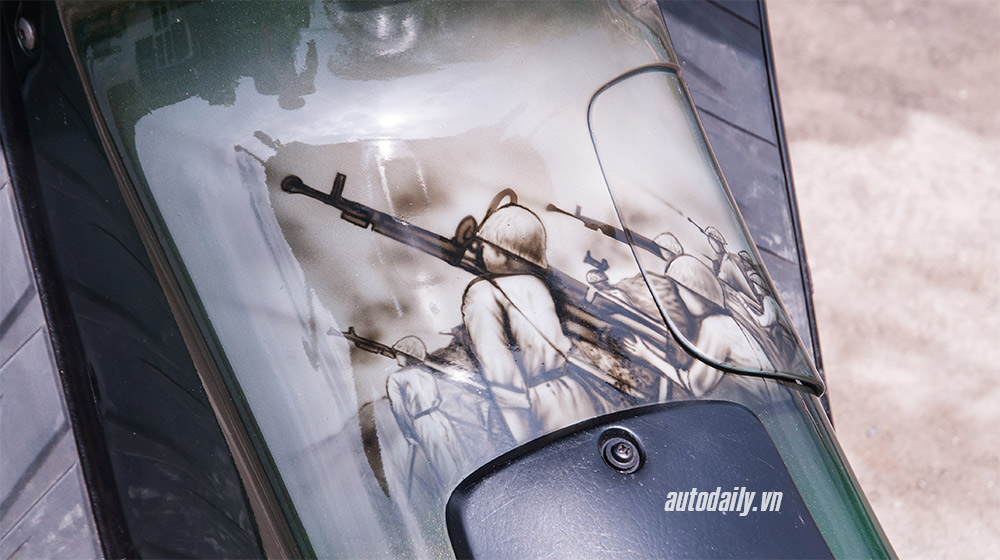 Dưới bàn tay của "nghệ nhân" AirBrush, chiếc Honda Pantheon 150 có tuổi đời khá lâu trở nên đầy hấp dẫn với bộ áo mới mang phong cách thời chiến tại Việt Nam.