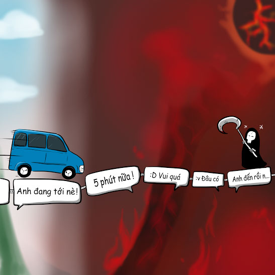 Dưới đây là những bức tranh của Họa sĩ Hoàng Anh Đức - PainterMan sáng tác về hậu quả của việc nhắn tin khi lái xe.