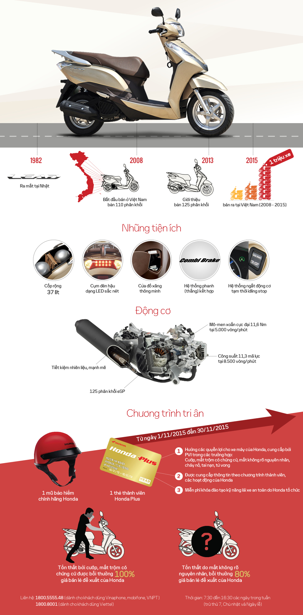 Nhân sự kiện Honda LEAD đạt mốc 1 triệu chiếc tại Việt Nam sau 7 năm có mặt, Honda đã tổ chức chương trình khuyến mại "khủng" cho tất cả các dòng xe từ ngày 1 - 30/11/2015.