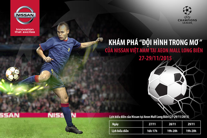 Khách hàng sẽ có cơ hội khám phá “Đội hình trong mơ” của Nissan – UEFA trong 3 ngày từ 27/11 đến 29/11/2015 tại trung tâm thương mại AEON Mall Long Biên, Hà Nội.