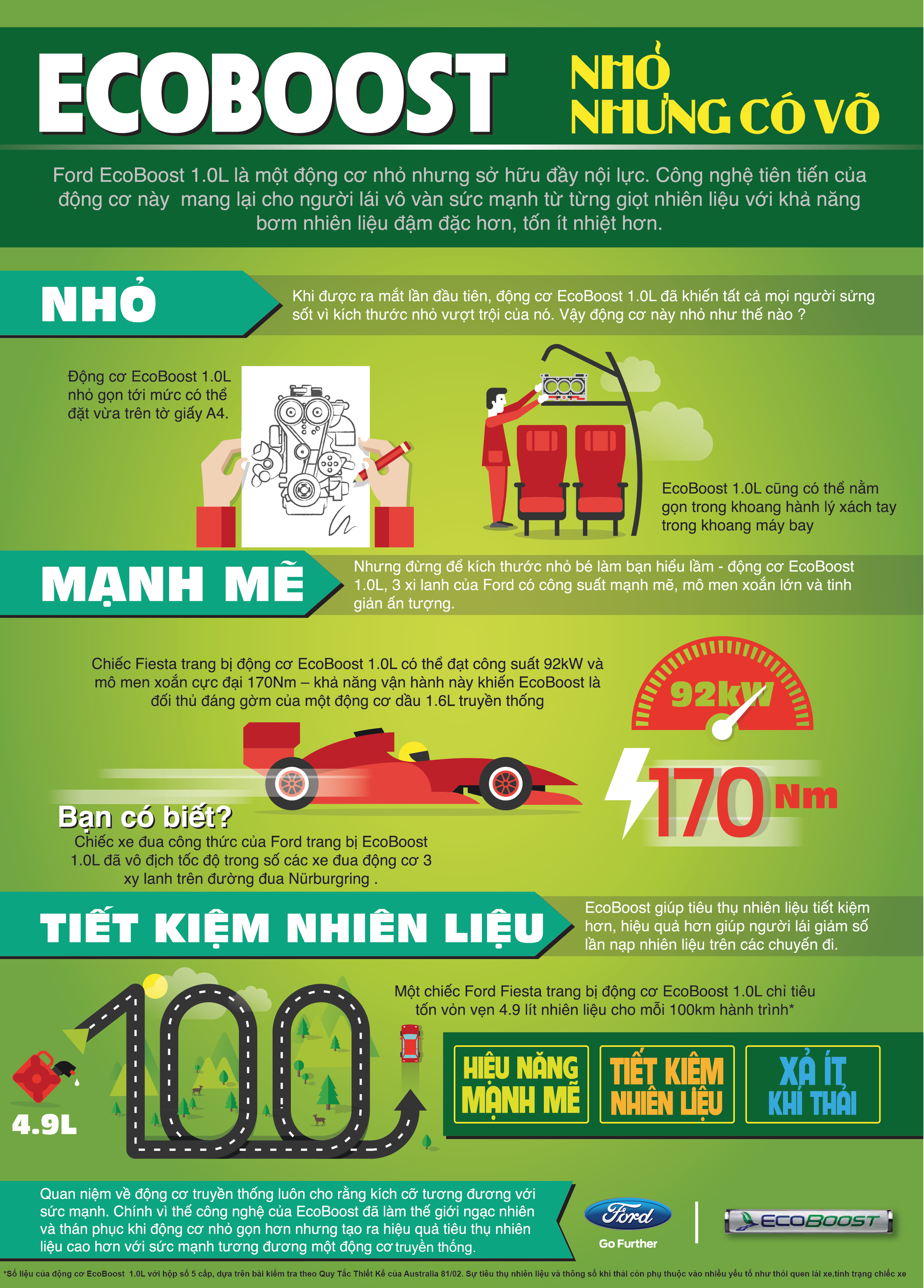 Động cơ EcoBoost với kích thước nhỏ gọn, có khả năng tiết kiệm nhiên liệu vượt trội hơn nhưng đồng thời vẫn sở hữu sức mạnh tương đương, thậm chí mạnh mẽ hơn những động cơ truyền thống.