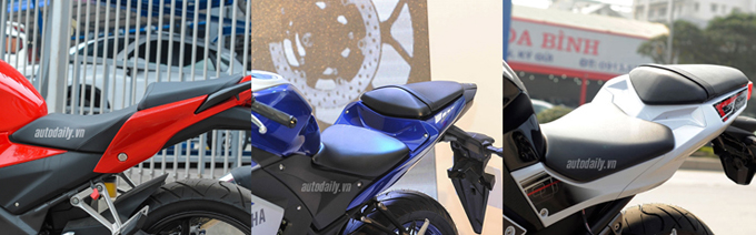 Cả CBR300R, R3 và Ninja 300 đều có thiết kế yên sau tách rời với yên trước. Vị trí ngồi của người lõm sâu ôm giúp chân ôm sát lấy bình xăng phía trước. Chiều cao yên của 3 xe lần lượt là 780, 780 và 785 mm.