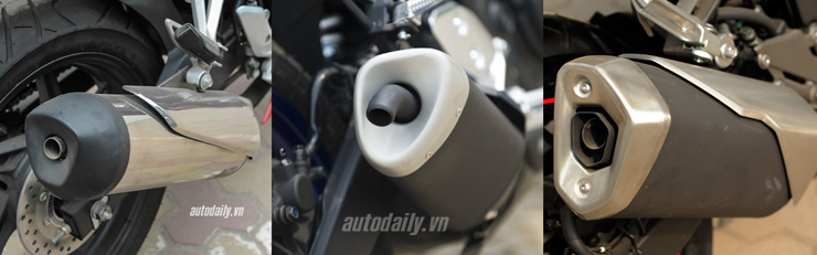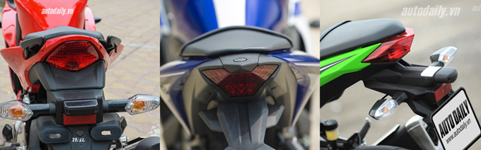 Tiến ra phía sau, đèn hậu của 3 xe đều được thiết kế khá nhỏ, CBR300R và R3 nằm gọn phía dưới trong khi Ninja 300 có phần để lộ ra nhiều hơn. Đèn xi nhan báo rẽ được di chuyển hết xuống pát để gắn biển số.