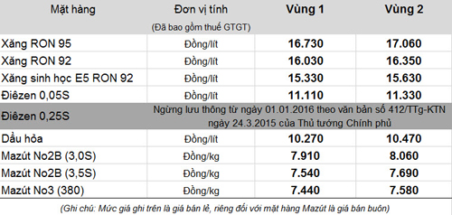 Mức giá nêu trên giảm 370 đồng so với trước và được Tập đoàn Xăng dầu Việt Nam (Petrolimex) áp dụng phổ biến từ chiều nay. Các mặt hàng xăng dầu khác cũng giảm 370-870 đồng một lít. Giá bán cụ thể như sau: