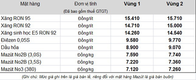 Giá bán lẻ xăng RON 92 được Tập đoàn Xăng dầu (Petrolimex) áp dụng từ 15h là 14.710 đồng một lít, giảm 730 đồng so với trước. RON 95 cũng hạ tương ứng trong khi xăng E5 giảm 490 đồng, còn 14.260 đồng một lít. Các mặt hàng dầu cũng có mức giảm 20-620 đồng một lít, kg. Mức áp dụng cụ thể như sau:.jpg)