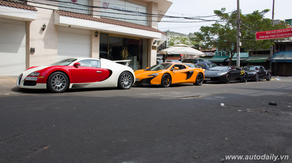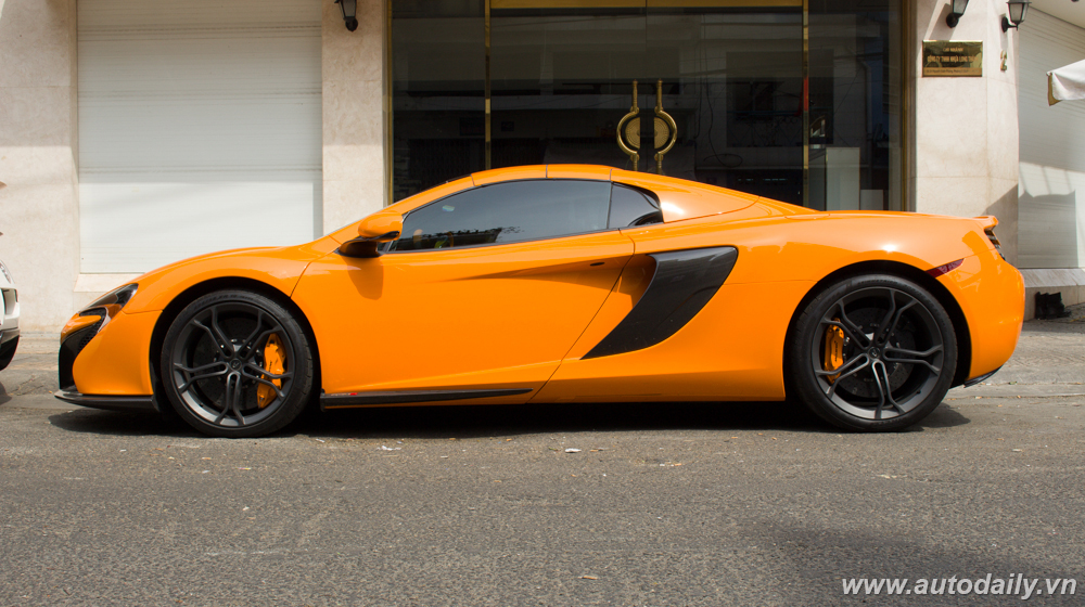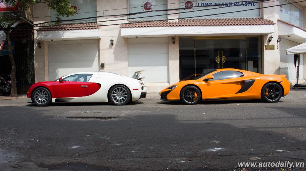 Ngoài chiếc Bugatti Veyron, vị đại gia ngành nhựa cũng "trưng bày" đầy đủ dàn siêu xe trong gara của mình. Trong hình là siêu xe McLaren 650S Spider độc nhất Việt Nam vừa đóng biển hồi cuối năm ngoái. McLaren 650S Spider sử dụng động cơ twin-turbo 3.8L V8 sản sinh công suất 650 mã lực tại 7.250 vòng/phút, mô-men xoắn 678 Nm tại 6.000 vòng/phút. Tương tự bản coupe, siêu xe này cần 3 giây để tăng tốc từ 0-100km/h, 8,2 giây từ 0-200km/h, trước khi đạt tốc độ cực đại 328 km/h.