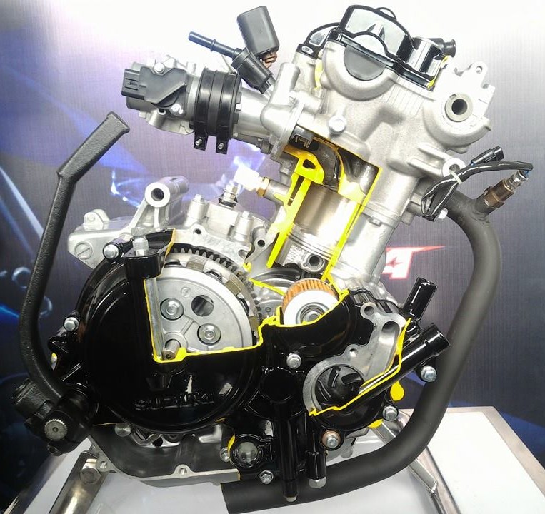 Để mang lại những con số đầy ấn tượng như vậy, Suzuki đã trang bị phun xăng điện tử thay vì chế hoà khí như trước. Tỷ lệ nén được nâng từ 10,2:1 lên 11,5:1, van hút, van xả đều lớn hơn cùng với pít-tông nhẹ hơn 16%..jpg)