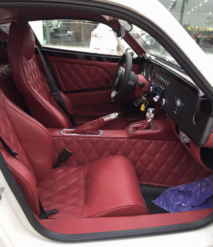 Mẫu xe thể thao thân gỗ đến từ Anh quốc này sở hữu ngoại thất màu trắng, nội thất bên trong màu đỏ đậm ấn tượng, động cơ V8 4.8L mạnh mẽ.