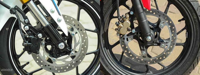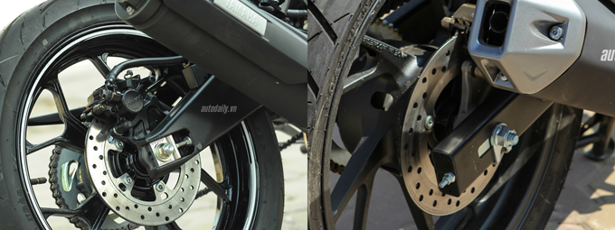 Tương tự, phía sau của cả 2 xe cũng được trang bị hệ thống phanh đĩa đơn.