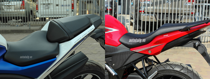 Yamaha MT-15 sở hữu thiết kế vị trí ngồi trước và sau gần như tách rời trong khi Honda CB150R 2106 là kiểu liền khối.