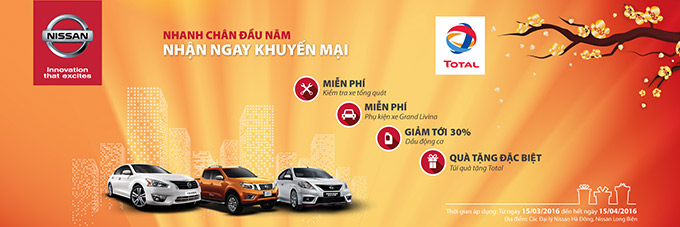 Nằm trong chuỗi chiến dịch dịch vụ chăm sóc khách hàng trong tháng 3 và tháng 4 năm 2016, Nissan Việt Nam giới thiệu chương trình ưu đãi và chăm sóc đặc biệt “Nhanh chân đầu năm, nhận ngay khuyến mại” dành cho các khách hàng đang sử dụng xe Nissan trên toàn quốc.