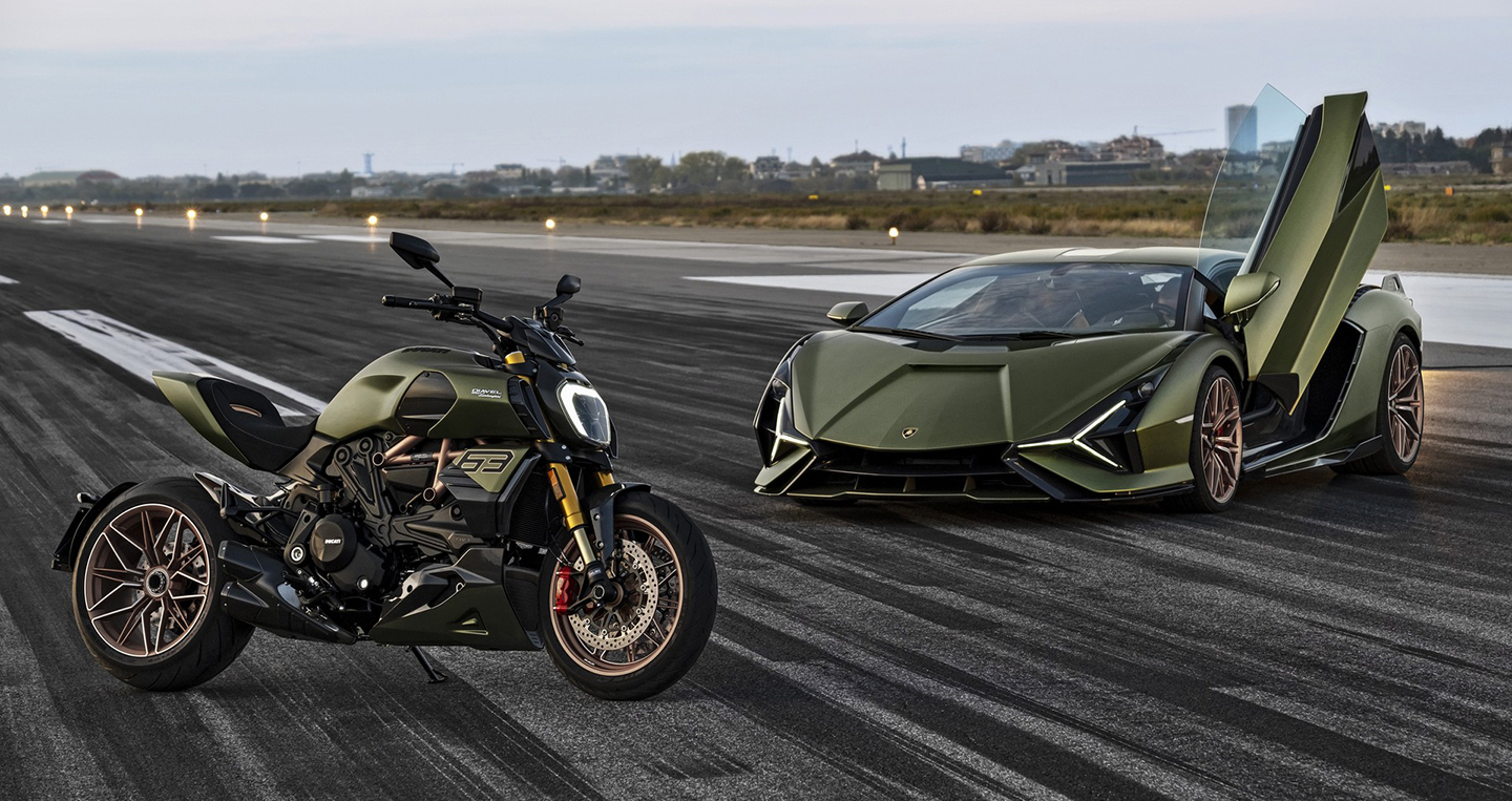 Ducati đã làm rung chuyển ngành công nghiệp xe 2 bánh thế giới khi ra mắt chiếc Ducati Diavel 1260 Lamborghini với số lượng giới hạn chỉ 630 chiếc vào tháng 8 năm ngoái. Và giờ đây, siêu phẩm này sẽ chính thức đặt chân đến Việt Nam trong đầu tháng 11/2021 với giá bán khoảng 1,3 tỷ đồng, chỉ duy nhất 1 chiếc được đưa về.Hồi tháng 8/2020, hai thương hiệu xe đình đám của tập đoàn mẹ Volkswagen là Ducati và Lamborghini đã chung tay trình làng phiên bản giới hạn đặc biệt hoàn toàn mới, lấy cảm hứng từ siêu phẩm Lamborghini Sian FKP 37. Phiên bản đặc biệt này mang tên Ducati Diavel 1260 Lamborghini.So với các phiên bản Diavel thông thường, sự khác biệt của Ducati Diavel 1260 Lamborghini tập trung ở vài chi tiết được làm bằng chất liệu sợi carbon, cùng với một số chi tiết màu vàng đồng (Electrum Gold) trên khung và cặp mâm.Bên cạnh đó, Ducati Diavel 1260 Lamborghini được thiết kế theo phong cách siêu xe Lamborghini Sian FKP 37 nổi bật với lớp sơn màu xanh lục mờ (Gey Green).Lamborghini đã giới thiệu Sian FKP 37 lần đầu tiên vào tháng 9/2019, là siêu xe hybrid đầu tiên của thương hiệu siêu xe này. “FKP 37” là kí hiệu viết tắt họ tên và năm sinh của cố chủ tịch tập đoàn Volkswagen, ngài Ferdinand Karl Piëch.“Siêu bò” Lamborghini Sian có số “63” được tô điểm trên cánh gió sau, tượng trưng cho sự thành lập của Lamborghini vào năm 1963. Con số mang tính biểu tượng này nay đã được xuất hiện trên hai bên hốc hút gió động cơ trước của Diavel 1260 Lamborghini, đồng thời cũng nhấn mạnh cho số lượng sản xuất giới hạn ở 630 chiếc trên thế giới.Trong khi đó, đèn hậu hình lục giác của Lamborghini Sian lại truyền cảm hứng cho tạo hình ống xả kép xếp chồng lên nhau của Diavel, phần ống xả này được hoàn thiện bằng sợi carbon. Phần hiển thị khởi động của màn hình màu TFT-LCD được trang bị trên phiên bản đặc biệt này xuất hiện cả hai logo của Ducati và Lamborghini được đặt cạnh nhau.Yên xe được bọc trong nhung màu xám với logo “Diavel” gắn phía trên. Bên cạnh đó, những điểm nhấn màu vàng như ốp dưới đuôi, viền hốc hút gió, logo “Diavel” trên yên được phủ màu vàng đồng càng khiến cho Diavel 1260 Lamborghini trở nên cá tính hơn.Ducati Diavel 1260 Lamborghini 2021 vẫn sử dụng khối động cơ hai xy-lanh kiểu L-Twin Testastretta DVT, dung tích 1.262cc, sản sinh công suất tối đa 162 mã lực tại 9.500 vòng/ phút và mô-men xoắn cực đại đạt 130 Nm tại 7.500 vòng/phút. Riêng tại thị trường Bắc Mỹ, khối động cơ sẽ được giới hạn công suất ở 157 mã lực tại 9.225 vòng/phút.Phiên bản giới hạn đặc biệt này vẫn nhận được gói trang bị điện tử hỗ trợ tương tự hai phiên bản thường gồm IMU, ABS Connering, Ducati Power Launch EVO, Traction control, Wheelie Control và Cruise Control.Ducati Diavel 1260 Lamborghini được trang bị hệ thống treo đến từ Ohlins giống như trên phiên bản 1260 S. Với phuộc trước hành trình ngược USD cỡ 48 mm và giảm xóc sau dạng mono-shock, cả phuộc trước và sau đều có khả năng tùy chỉnh toàn phần. Hệ thống phanh cũng không có gì khác biệt ngoại trừ kẹp phanh được sơn màu đỏ, vẫn là loại đến từ thương hiệu Brembo.