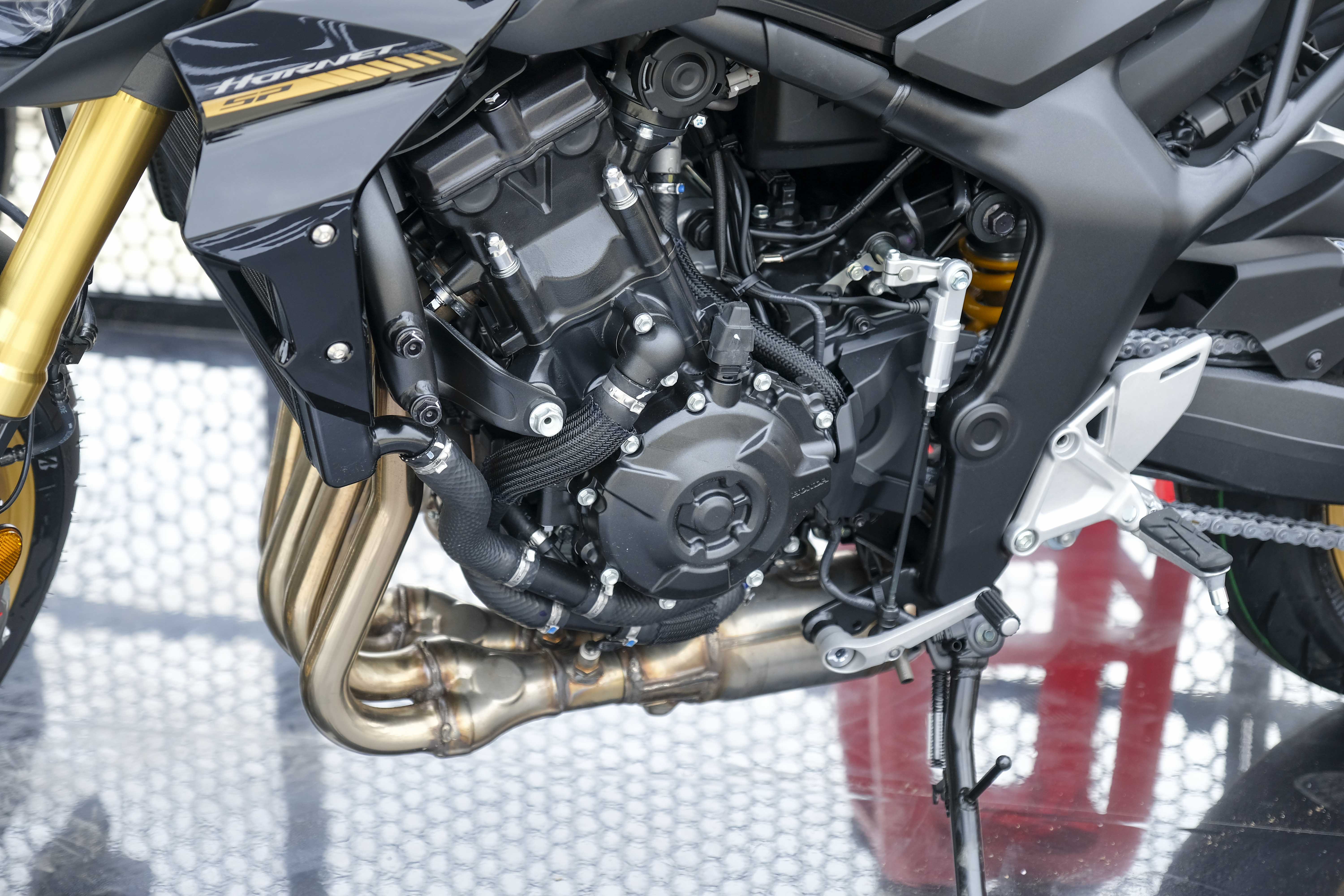 CB1000 Hornet được trang bị khối động cơ bốn xi-lanh, 1000cc, được kế thừa từ CBR1000RR Fireblade. Không chỉ dừng lại ở đó, Honda còn “nâng cấp” hệ thống động cơ này với hệ thống Throttle By Wire (TBW), cho phép người lái tùy chỉnh ba chế độ lái mặc định cùng hai chế độ người dùng riêng biệt. Bạn sẽ có thể chuyển từ chế độ Rain nhẹ nhàng đến chế độ Sport mạnh mẽ chỉ với một nút bấm, dễ dàng kiểm soát sức mạnh của chiếc xe dù trong bất kỳ điều kiện nào. Tính năng Emergency Stop Signal (ESS) cũng sẽ giúp bạn an toàn hơn trong trường hợp cần dừng gấp.