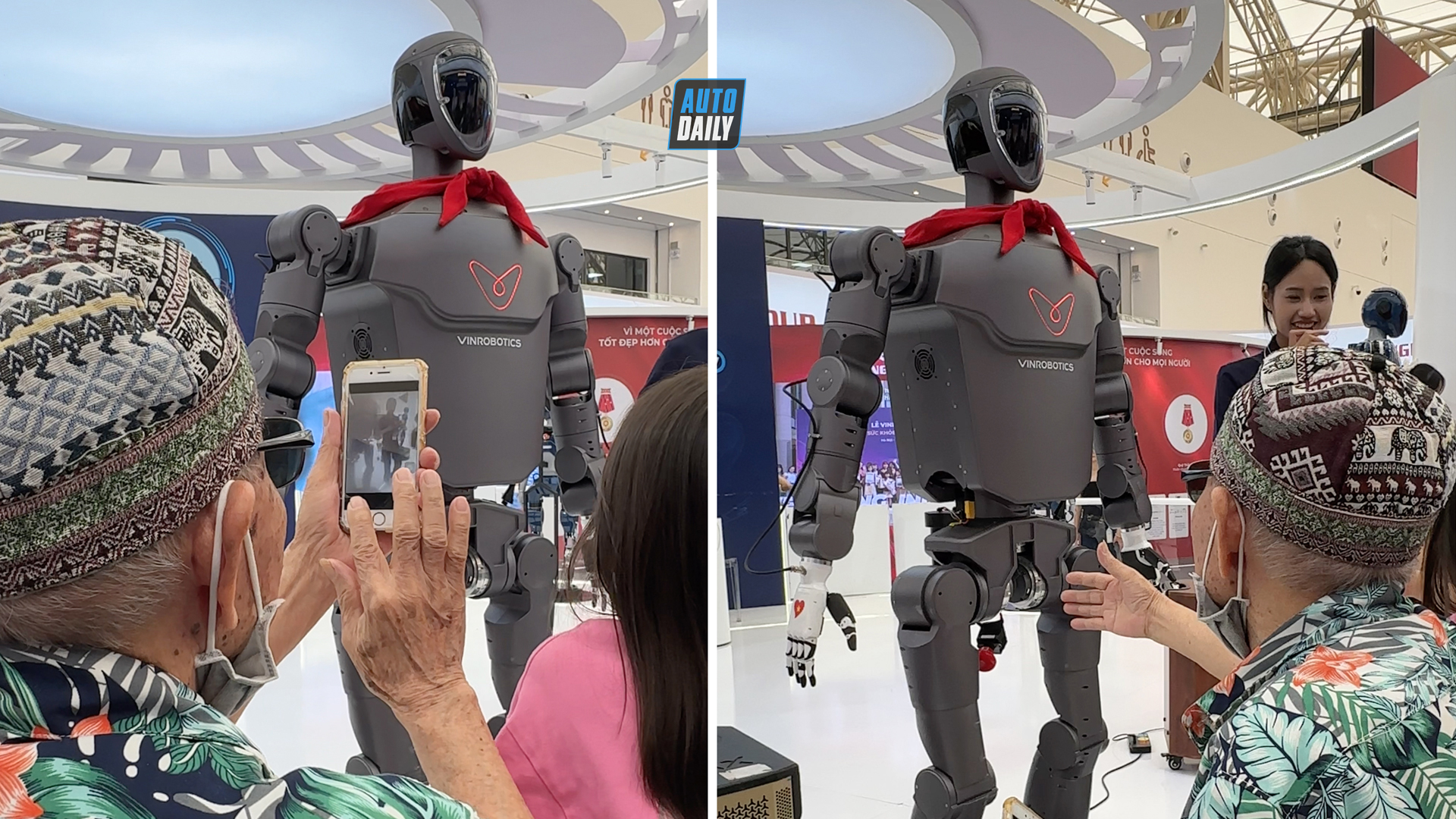 Khoảnh khắc lay động ở gian hàng Vinrobotics: Cụ ông 80 tuổi kiên nhẫn chụp hình và bắt tay robot