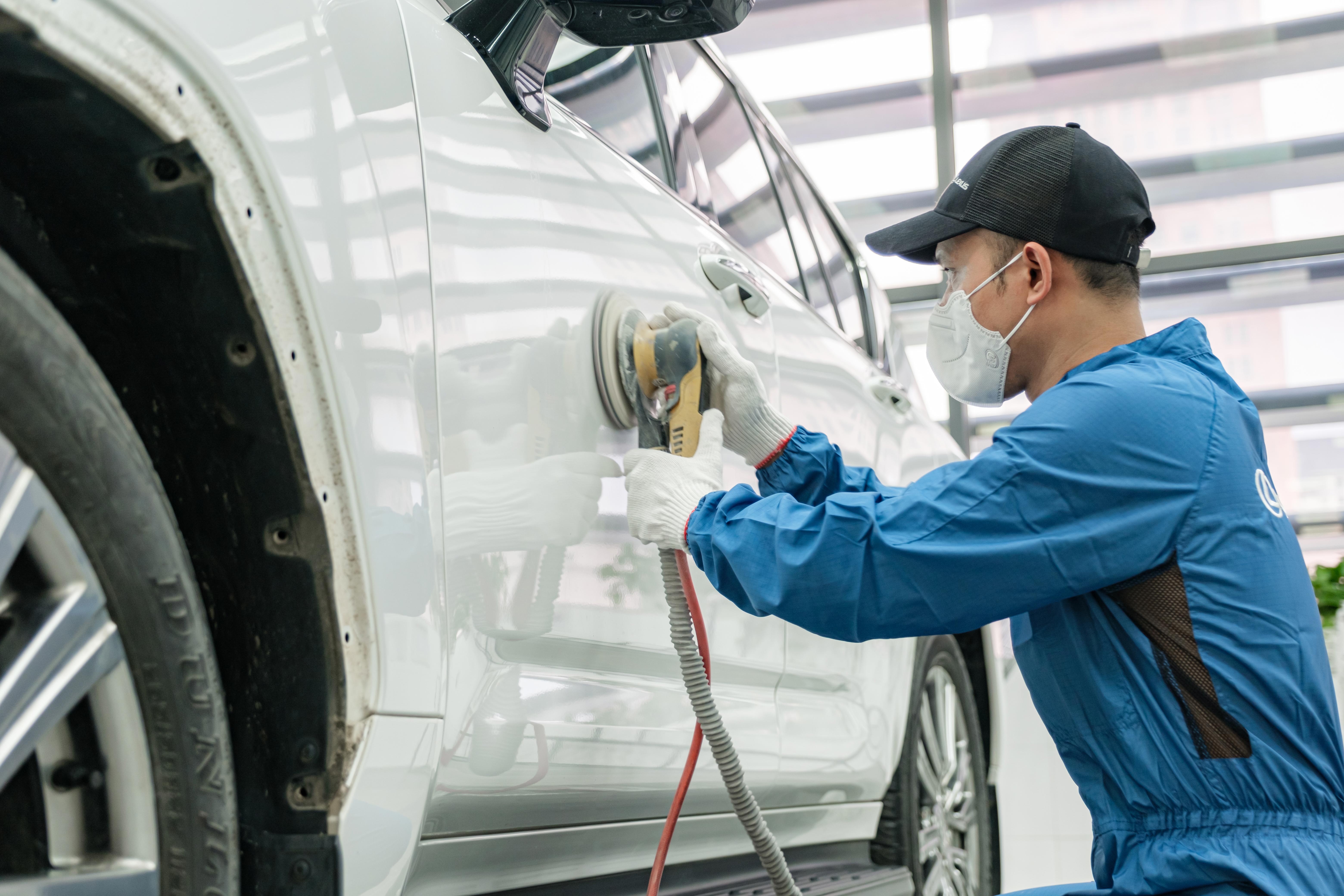Công đoạn phun sơn đòi hỏi kinh nghiệm và kỹ năng cao của người kỹ thuật viên. Sau khi pha chế và tinh chỉnh để có được màu sắc hoàn hảo và phù hợp nhất với xe, các kỹ thuật viên dày dạn kinh nghiệm và đạt được chứng nhận đào tạo của hãng sẽ tiến hành sơn nhiều lớp để khôi phục lớp sơn có chiều sâu và độ bóng như nguyên bản.