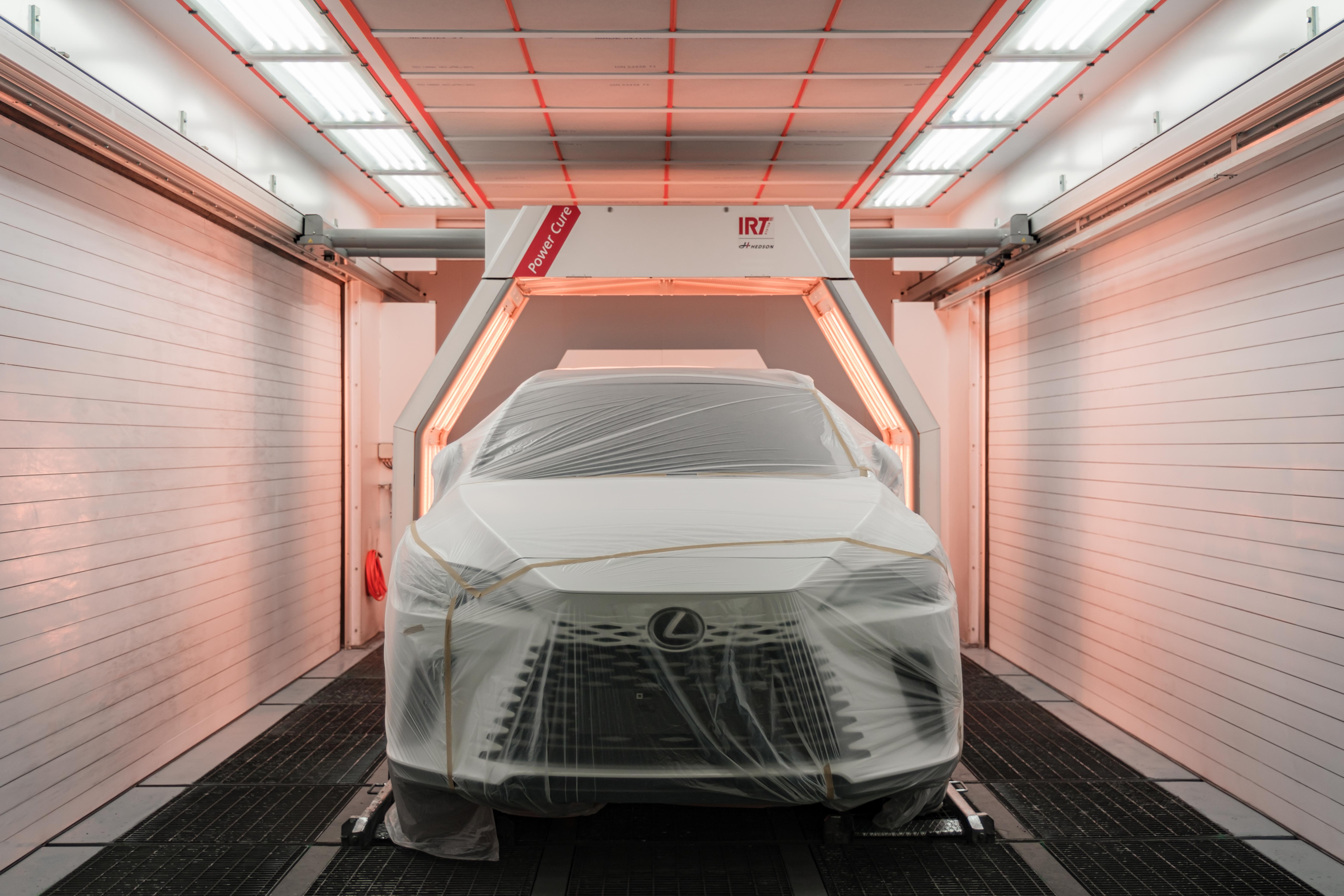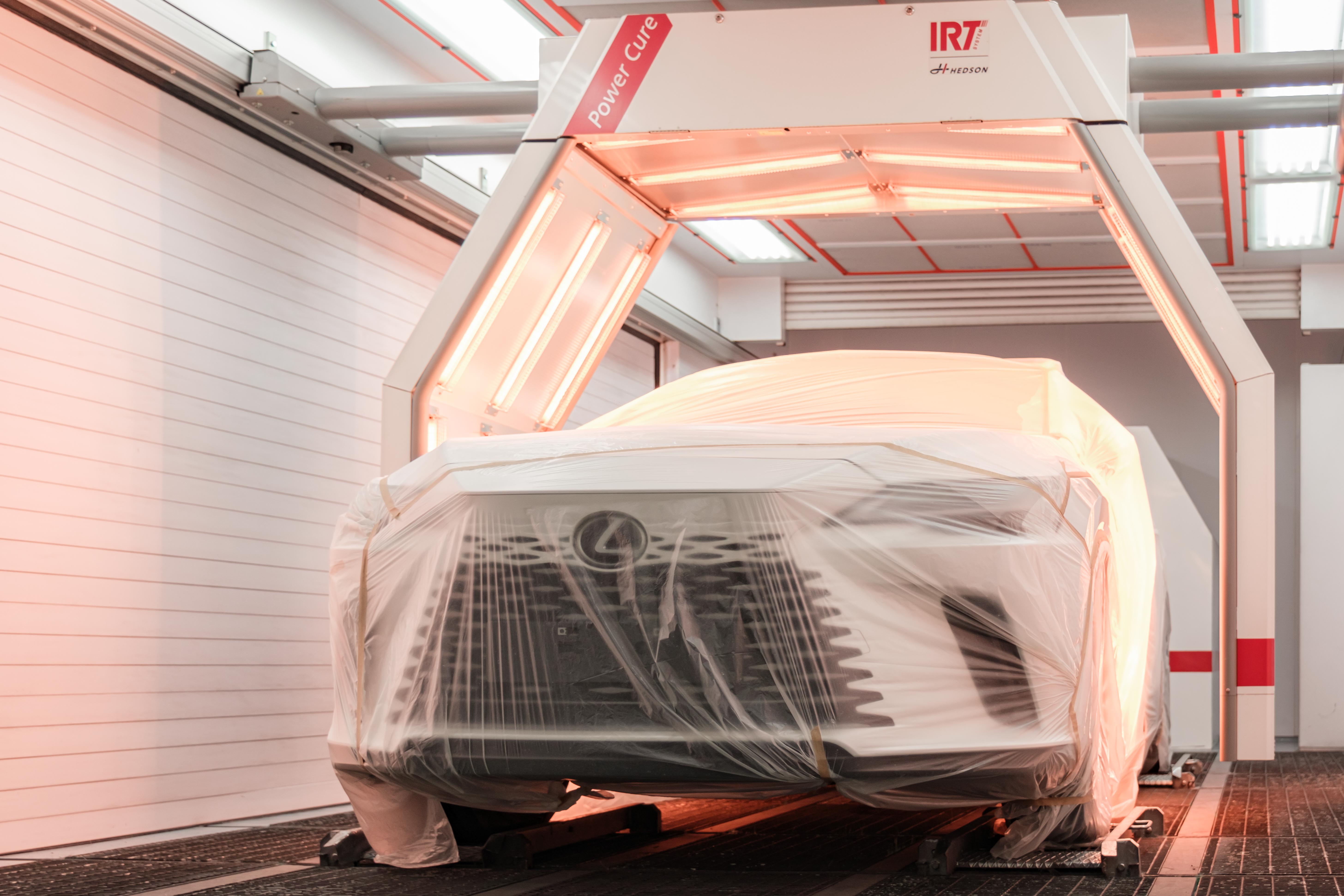 Điểm đáng chú ý của công nghệ sơn sấy IRT Power Cure là chiếc xe sẽ không cần sấy nóng toàn bộ mà chỉ tập trung vào các điểm cần sấy, giúp sấy khô hoàn toàn từ trong ra ngoài, sắp xếp các hạt màu sơn một cách đồng đều để tạo nên một lớp sơn sắc nét, đồng thời đảm bảo an toàn cho các bộ phận bên trong xe trong suốt quá trình sấy. Việc sấy điểm cũng tiết kiệm thời gian chờ, rút ngắn thời gian giao xe đến tay khách hàng mà vẫn đảm bảo chất lượng tốt nhất. Đặc biệt, công nghệ IRT Power Cure rất thân thiện với môi trường, phù hợp với tư duy “sống xanh” cấp tiến của những khách hàng Lexus.