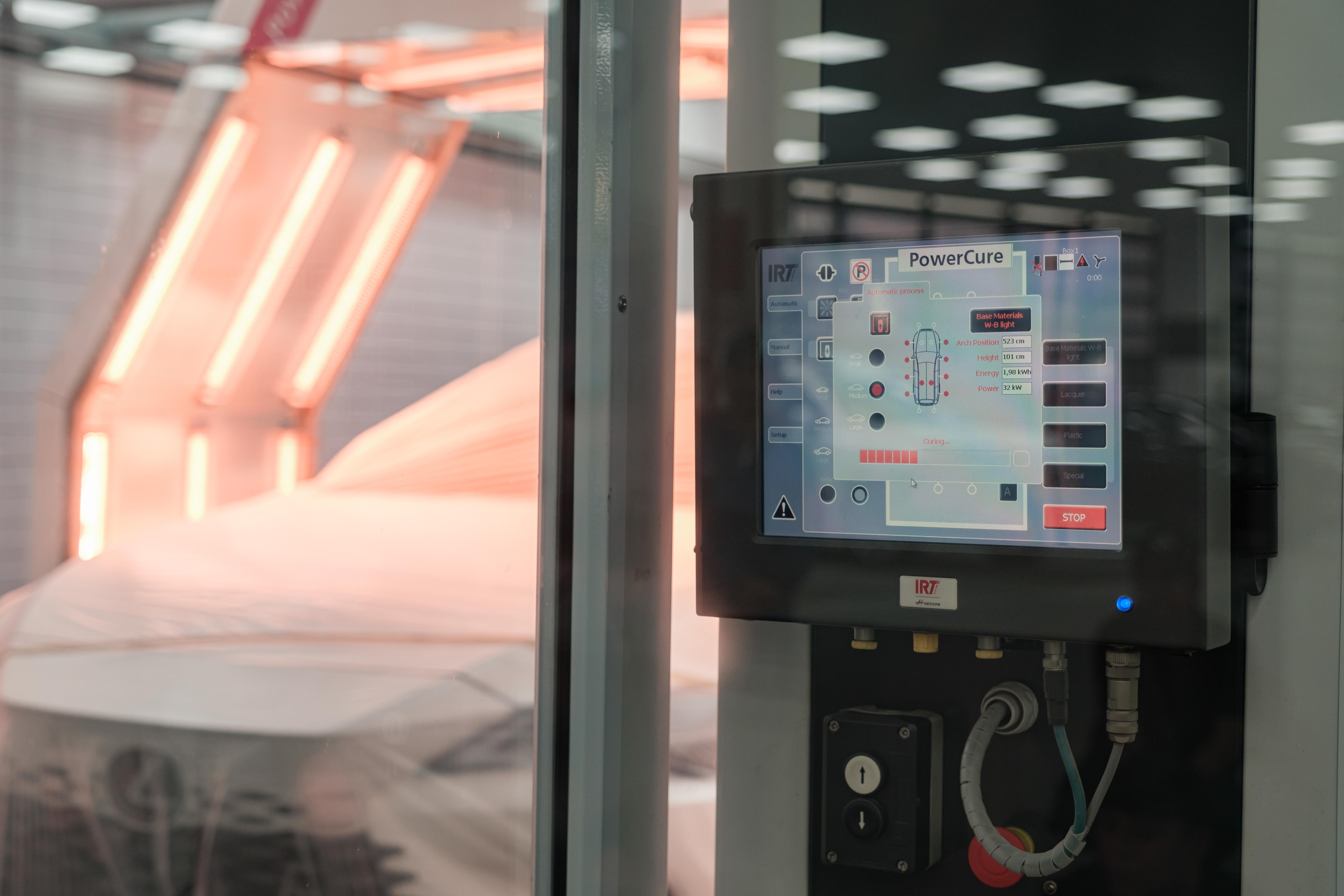 Công nghệ sơn sấy Robot tự động IRT Power Cure rất ưu việt. Robot được kỹ thuật viên lập trình thông qua màn hình để tự động điều khiển nhiệt lượng và trạng thái sấy khô phù hợp với từng loại vật liệu sơn, kích cỡ và vị trí tấm cần sấy nên rút ngắn được thời gian sấy. Cụ thể, thời gian Robot sấy khô trung bình cho một vị trí sửa chữa cơ bản chỉ khoảng 10 phút.