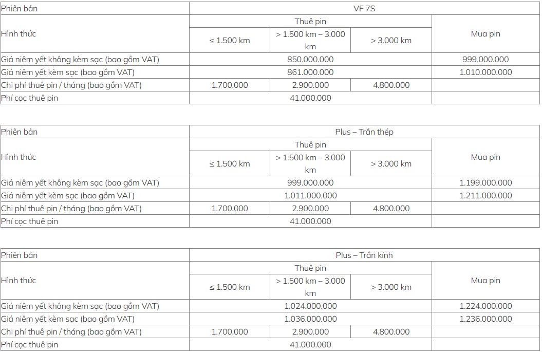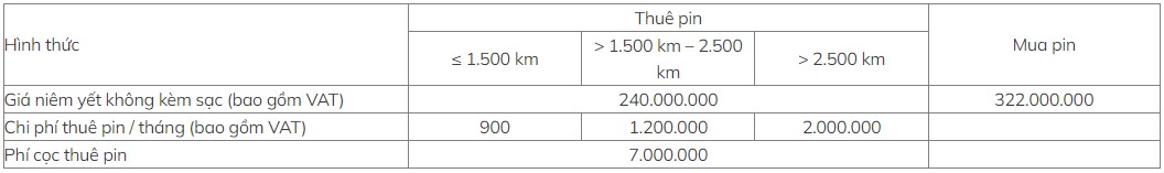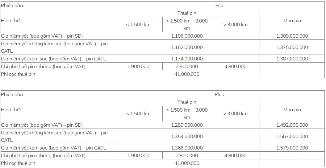 Cụ thể, giá bán và thuê pin các dòng ô tô điện VinFast như sau: