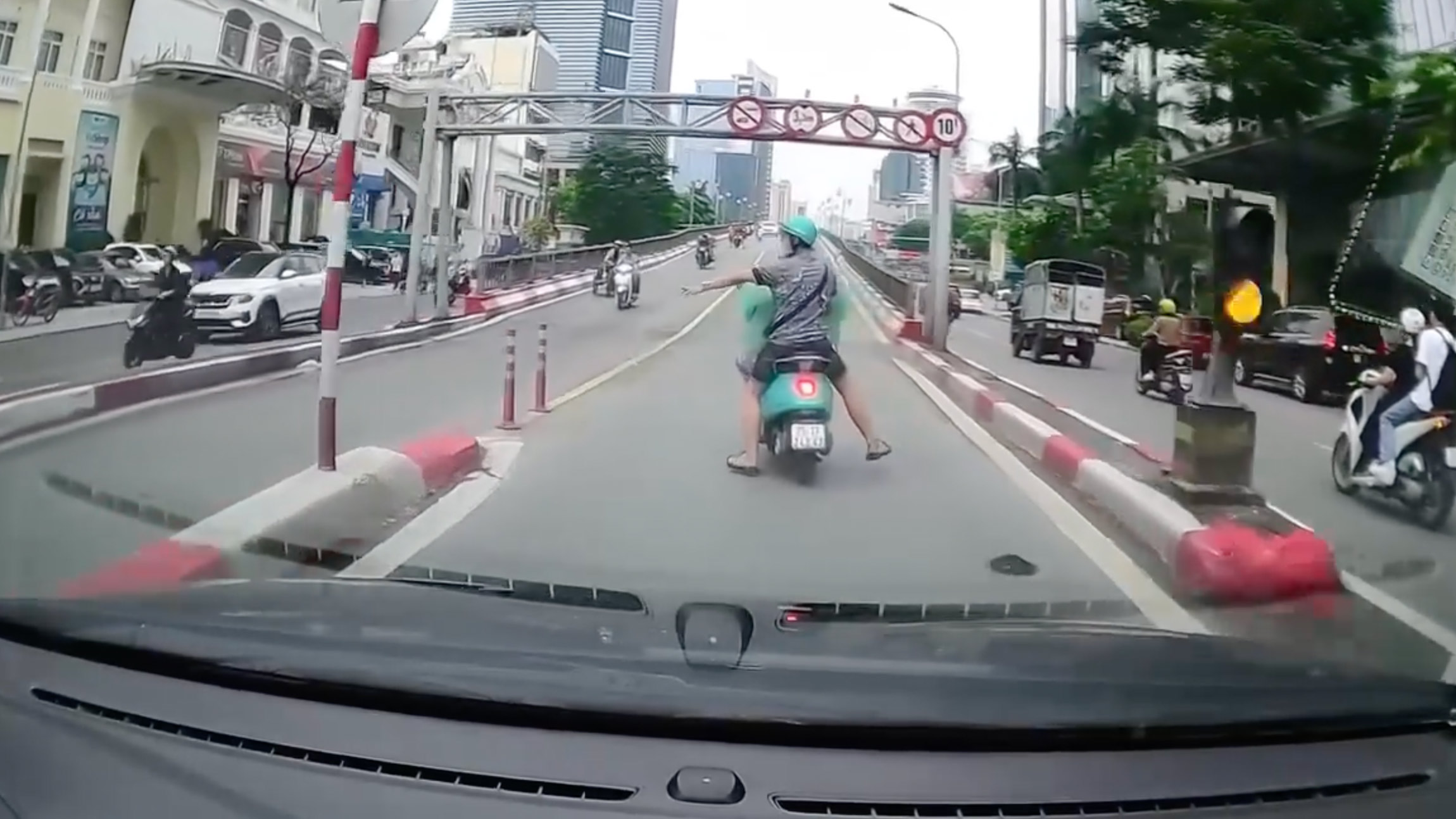 Xe máy quay đầu ẩu trên cầu suýt bị ôtô đâm